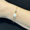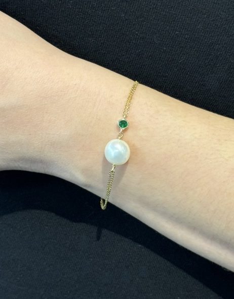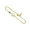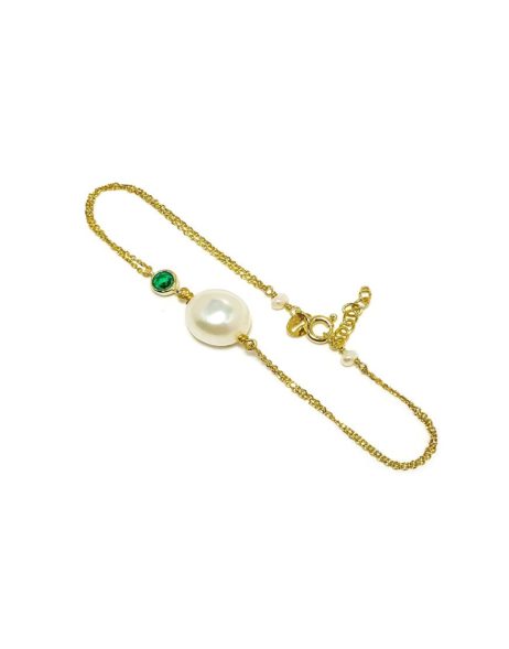 Υπέροχο χειροποίητο βραχιόλι από φυσικό μαργαριτάρι Fresh Water Biwa μπαρόκ με διπλή αλυσίδα και πράσινο ζιργκόν από ασήμι 925 επιχρυσωμένο.