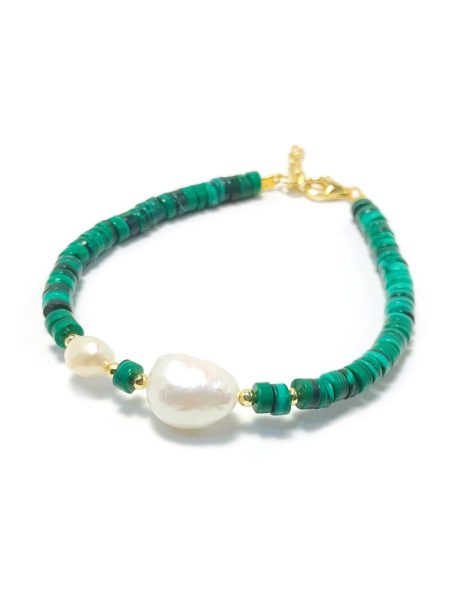 ΒΡΑΧΙΟΛΙ ΜΕ ΜΑΛΑΧΙΤΗ, ΜΑΡΓΑΡΙΤΑΡΙΑ BAROQUE KAI ΑΙΜΑΤΙΤΕΣ ΑΠΟ ΑΣΗΜΙ 925 ΕΠΙΧΡΥΣΟ.
