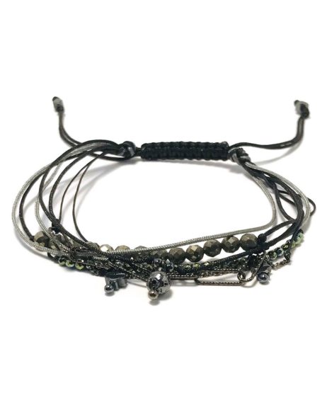 Εντυπωσιακό χειροποίητο πολύσειρο βραχιόλι με φυσικές ορυκτές πέτρες απο πυρίτη, αιματίτη, λάβα και ιδιαίτερη αλυσίδα απο ασήμι 925 με μαύρο χρύσωμα.