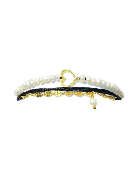 ΒΡΑΧΙΟΛΙ ΜΑΚΡΑΜΕ ΜΕ ΜΑΥΡΟ ΚΟΡΔΟΝΙ, ΜΑΡΓΑΡΙΤΑΡΙΑ FRESH WATER BIWA KAI ΚΑΡΔΟΥΛΑ ΑΠΟ ΧΡΥΣΟ Κ14.