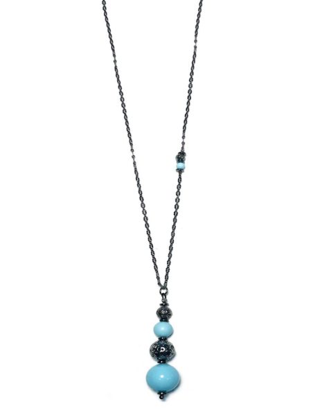 ΚΟΛΙΕ ΜΑΚΡΥ ΜΕ ΠΑΣΤΑ ΤΥΡΚΟΥΑΖ, ΛΑΒΑ, ΑΙΜΑΤΙΤΕΣ ΚΑΙ ΑΣΗΜΙ 925 ΜΕ ΜΑΥΡΟ ΧΡΥΣΩΜΑ.