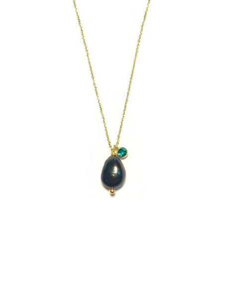 ΚΟΛΙΕ ΜΕ ΜΑΥΡΟ ΜΑΡΓΑΡΙΤΑΡΙ ΜΠΑΡΟΚ, ΠΡΑΣΙΝΟ ΖΙΡΓΚΟΝ ΚΑΙ ΑΣΗΜΙ 925 ΕΠΙΧΡΥΣΟ.