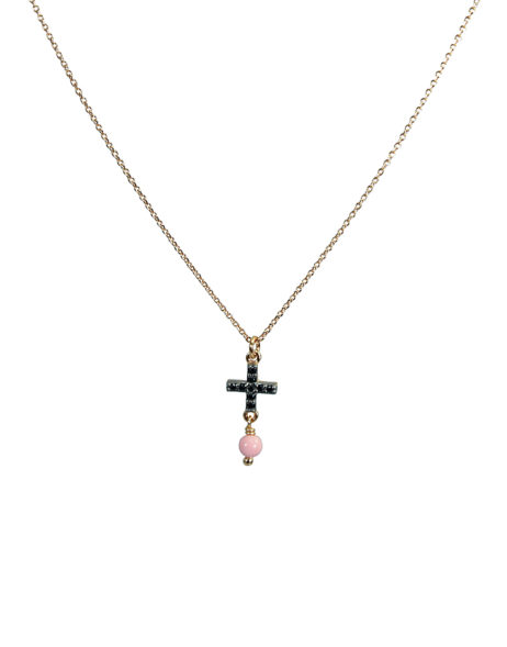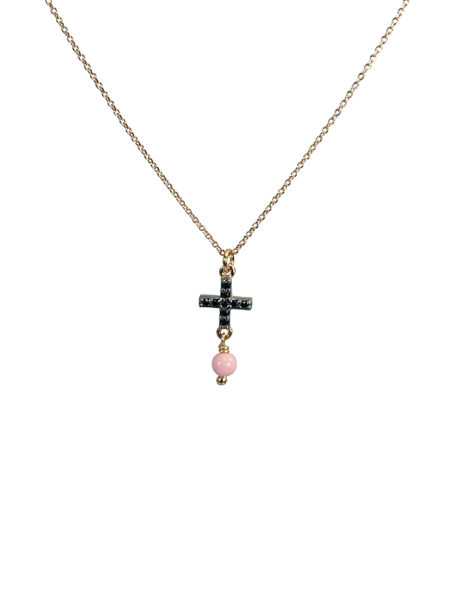 ΚΟΛΙΕ ΜΕ ΣΤΑΥΡΟ ΑΠΟ ΖΙΡΓΚΟΝ ΚΑΙ ΚΟΡΑΛΙ ΜΕ ΑΛΥΣΙΔΑ ΑΠΟ ΑΣΗΜΙ 925 ΜΕ ΡΟΖ ΧΡΥΣΩΜΑ.