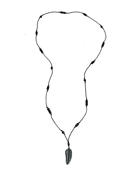 ΚΟΛΙΕ ΜΕ ΦΤΕΡΟ ΚΑΙ ΜΑΥΡΟ ΚΟΡΔΟΝΙ ΜΕ ΑΙΜΑΤΙΤΗ, ΑΧΑΤΗ ΚΑΙ ΑΣΗΜΙ 925 ΜΕ ΜΑΥΡΟ ΧΡΥΣΩΜΑ.