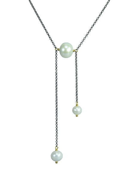 ΚΟΛΙΕ ΜΕ ΜΑΡΓΑΡΙΤΑΡΙΑ ΚΑΙ ΑΛΥΣΙΔΑ (45cm) ΑΠΟ ΑΣΗΜΙ 925 ΜΕ ΜΑΥΡΟ ΧΡΥΣΩΜΑ.